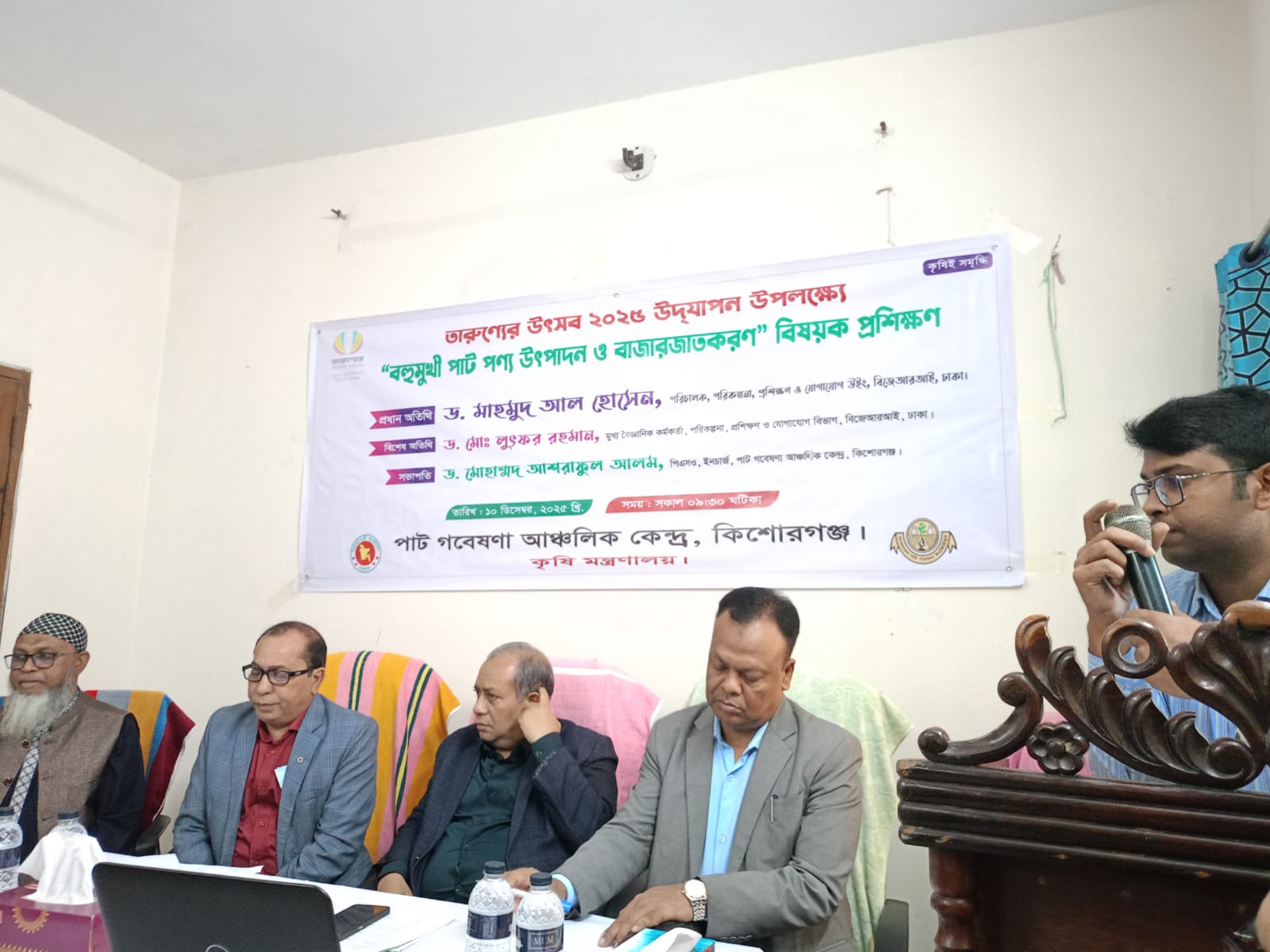 কিশোরগঞ্জে পাটজাত পণ্য উৎপাদন ও বাজারজাতকরণ বিষয়ে বাংলাদেশ পাট গবেষণা ইনস্টিটিউট (বিজেআরআই) কর্তৃক ১০ ডিসেম্বর ২০২৫ এক দিনব্যাপী প্রশিক্ষণ অনুষ্ঠিত হয়েছে। কিশোরগঞ্জ আঞ্চলিক পাট গবেষণা কেন্দ্রের প্রশিক্ষণ কক্ষে অনুষ্ঠিত এ কর্মশালায় ১৮ থেকে ৩৫ বছর বয়সী যুব উদ্যোক্তারা অংশগ্রহণ করেন।